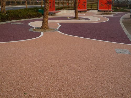 答:主要有石子、水泥、凝膠增強劑、乳化反應劑、著色劑按比例在現場整體攤鋪成型,養護七天后,最后噴上密封罩面劑。
